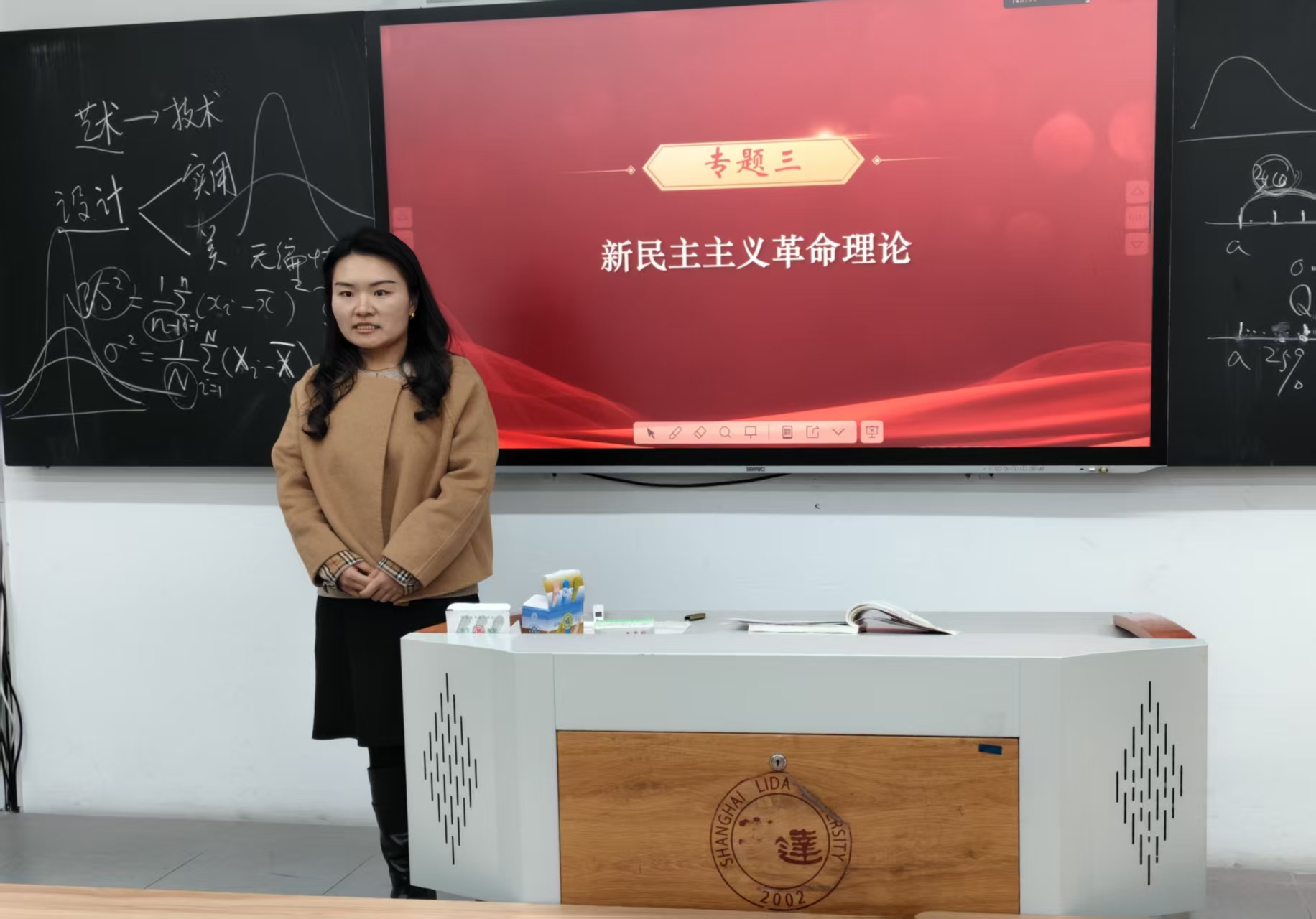 杨洁老师聚焦“新民主主义革命纲领”开展教学展示,以“背景介绍—视频呈现—理论解构”为主线搭建教学框架,通过小组讨论引导学生从被动接受转向主动思考,充分契合“三有”课堂建设要求。她以系列视频串联分散知识点,帮助学生快速梳理知识脉络、增强情境代入感,有效提升课堂吸引力与理论说服力。